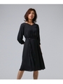 トゥインクルフラワープリント×バードリーフ刺しゅうワンピース/チャコール