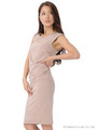 ボートネック七分袖フレアワンピース/ライトベージュ(051)