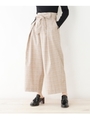 ストライプ×レーススカーフプリントギャザーパンツ/ブラック