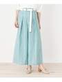 チュール切り替えプチリボンサテンワイドパンツ/ブルー
