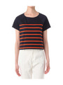 Vネックボーダー袖タックT/レッド柄