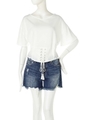 ・サイドレースアップ刺繍Tシャツ/ピンク
