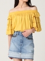 カラミストライプふんわり袖ブラウス/レモンイエロー(031)