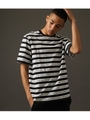 異素材ポケット ボーダー 半袖Tシャツ14506/アイボリー×ネイビー(204)
