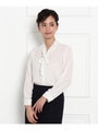 【Tralala】ドット切替フリルブラウス/ブルー