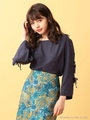 後ろ釦ぺプラム風ブラウス/サックス(390)