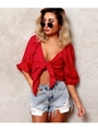 ランダムドット両Vキャンディースリーブブラウス/ネイビー