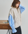 Vネックケーブルニットプルオーバー/ネイビー(093)