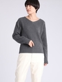 【洗える】ガーター編みボクシーVネックニット/ホワイト系(002)