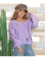 バックビジュー付Vネックニット/ラベンダー