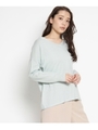 バックVマルカンニットプルオーバー/ブルーグリーン