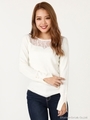 【洗える】衿ビジュー付きニット/ホワイト(002)