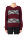 ニット×シフォン異素材MIX七分袖プルオーバー