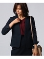 ボンディングノーカラーミドル丈ジャケット/ブルー系(095)