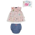 鳥刺しゅうポケットカーディガン×花柄ロンパースセット